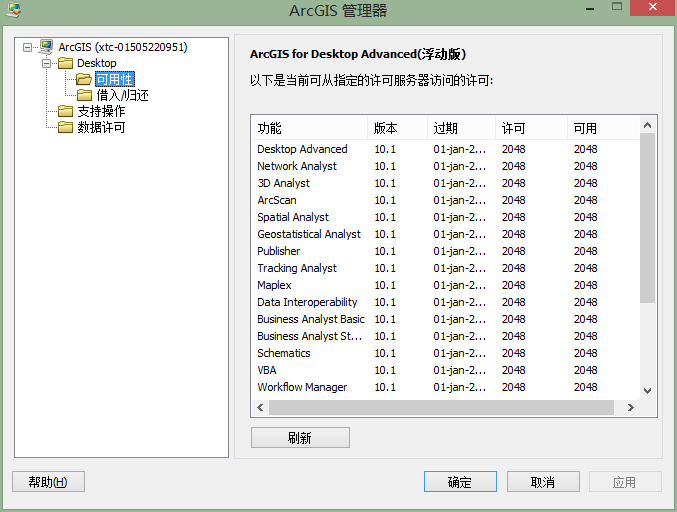 找到 arcgis administrator查看许可情况