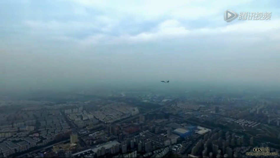 视频中,一架遥控操作的多旋翼无人机正在我国某城市上空数百米悬停拍摄,画面右侧突然高速飞入一架已经放下前三点式起落架的喷气式战斗机,疑似正在进入进近着陆阶段。