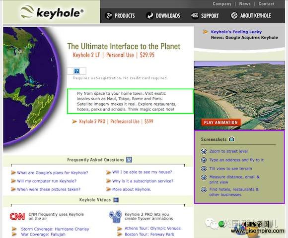 2004年,Keyhole的概念越来越成功,最后终于被谷歌看中收购.....