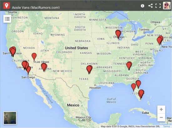 除了之前收购BroadMap时获得的数据,苹果也采用取景车来获取更多信息。外媒MacRumors对道奇车辆的信息进行了整合,在地图上标示了车辆被街头曝光的位置。